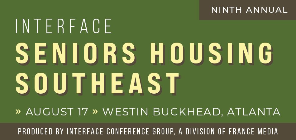 Seniors Housing Business and France Media’s InterFace Conference Group are pleased to host the 9th annual InterFace Seniors Housing Southeast conference on August 17th in Atlanta. We are also hosting our annual roundtables and cocktail reception beginning at 4:05 pm on August 16th.